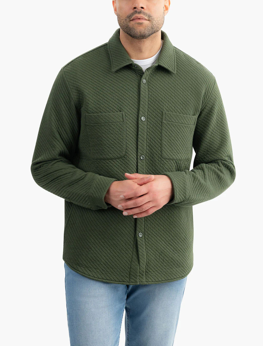 Soft like a sweatshirt, sharp like a jacket. Built with a textured diamond-knit fabric and easy snap-front closure, this layer brings next-level comfort with clean, everyday style. Warm without being bulky and polished without being stiff, it’s perfect for cool mornings, and late nights. Throw it on and instantly look like you tried (even if you didn’t).