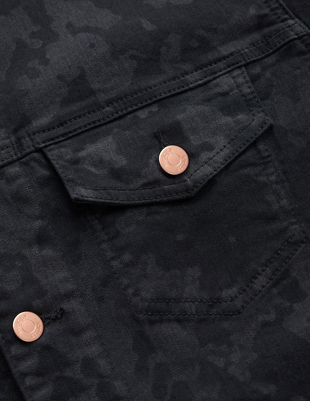 The most comfortable denim jacket ever made, now in a subtle black camo. As the (self-proclaimed) kings of denim it was just a matter of time before we got into the jacket game. Welp, we’ve arrived. A new take on our casual, retro jean jacket. Constructed with our patented stretch denim and chill vibes, this baby handles open air road trips up and down the coast with ease.Â