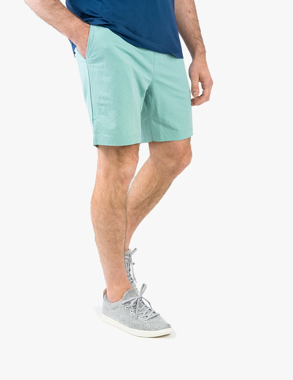 New knit canvas is oh so pure. Like a picnic blanket in the summer, this material is a straight up must have. Breathable, soft, and made for those both on the move and on the couch. In 3 beautifully washed colors, these lightweight textured shorts have summertime domination weaved into every stitch.Â